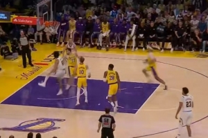 下一篇: 打小哈达威头上~詹姆斯失误后奋力回追 犯规破坏对手快攻