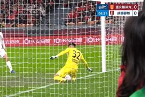 比赛第6分钟,向余望抢点打门,刘殿座在门线上将球控制住。