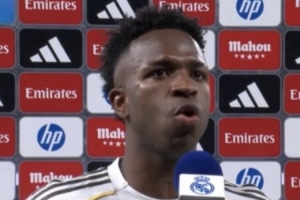 体育资讯3月23日讯 西甲第29轮比赛,维尼修斯打进2球,皇马主场3-2击败马竞,赛后维尼修斯接受了媒体的采访。
