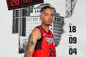 此役,2017年状元郎、猛龙10天合同后卫富尔茨为猛龙905出战,他表现出色,单场上阵27分钟12投7中,三分3中2、罚球1中1,拿下18分2篮板9助攻4抢断,得分、助攻和抢断创个人G联盟生涯新高,正负值高达+34和队友AJ·劳森并列全场最高。