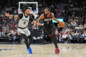 体育资讯03月09日讯 NBA常规赛,火箭在客场以120-145惨败马刺。